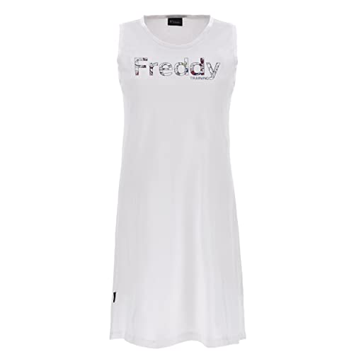 FREDDY - Abito Smanicato con Stampa Floreale Training, Bianco, Large