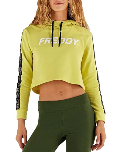 FREDDY - Felpa Cropped con Cappuccio E Nastro Nero Logato Oro, Giallo, Small