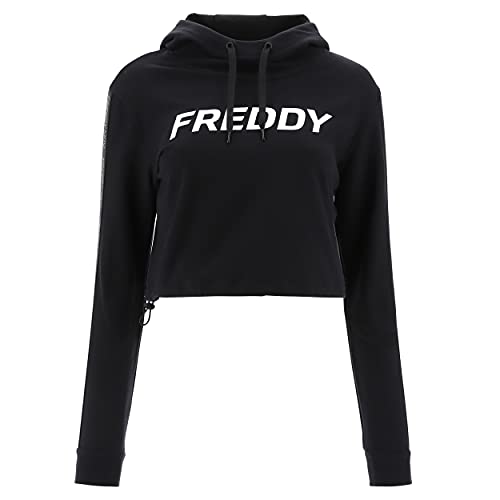 FREDDY - Felpa Cropped con Cappuccio E Nastro Nero Logato Oro, Nero, Large