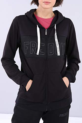 FREDDY Felpa Regular con Cappuccio e Stampe Glitter in Tono - Nero - Small