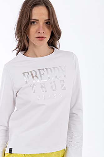 FREDDY Felpa Regular con Micro Borchie e Stampa Argento - Bianco - Small