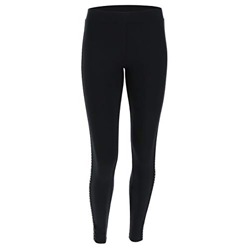 FREDDY Leggings Elasticizzati con Banda Laterale Nera Decorata - Nero - Extra Small