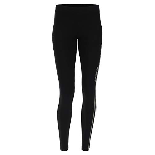 FREDDY Leggings Elasticizzati con Doppia Banda Laterale Riflettente - Nero-Bianco - Extra Small