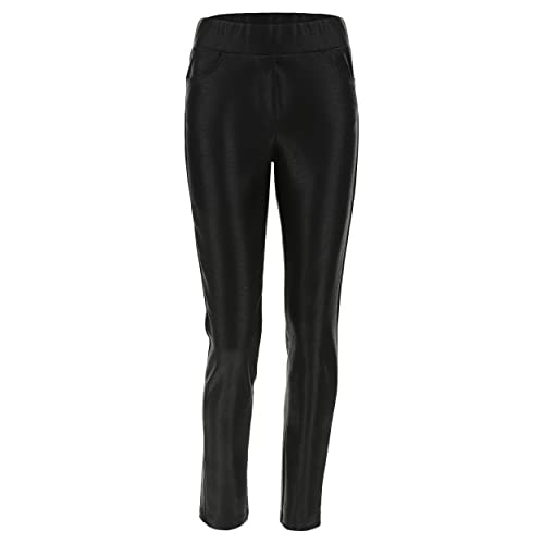 FREDDY - Leggings Neri Slim in Interlock Rivestito Reptile, Nero, Medium