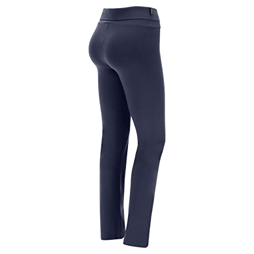 FREDDY - Leggings Vita Risvoltabile Fondo Dritto E Stampa Argento, Blu, Extra Small