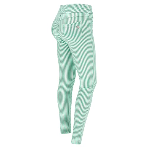 FREDDY - Pantalone N.o.w.® Vita Risvoltabile in Jersey Drill A Righe Pastello, Donna, Verde, Medium