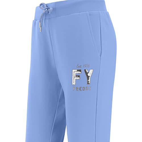FREDDY - Pantaloni Leggeri Fondo Dritto Grafica Paillettes E Glitter, Azzurro, Medium