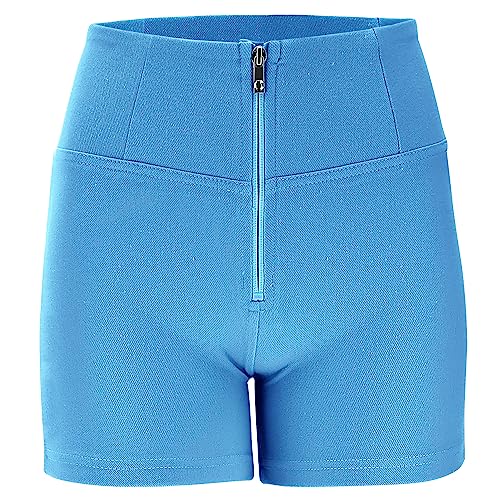 FREDDY - Shorts Push Up WR.up® Vita Alta Jersey Drill Ecologico, Azzurro, Extra Small