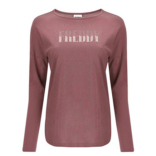 FREDDY T-Shirt Manica Lunga con Logo Glitter - Rose Taupe - Extra Small