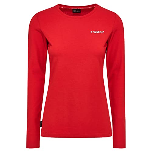 FREDDY - T-Shirt Manica Lunga in Jersey Elasticizzato, Rosso, XX Large