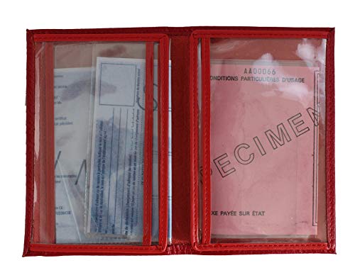Frederic Johns - Porta-documenti per auto in pelle - formato 4 scomparti - Custodia per libretto di circolazione, patente, carta di identità, carte, in morbido cuoio (Nero) (Rosso)