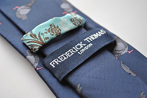Frederick Thomas CRAVATTA blu navy con grigio piccione RICAMATO MODELLO con firma a fiori to the POSTERIORI