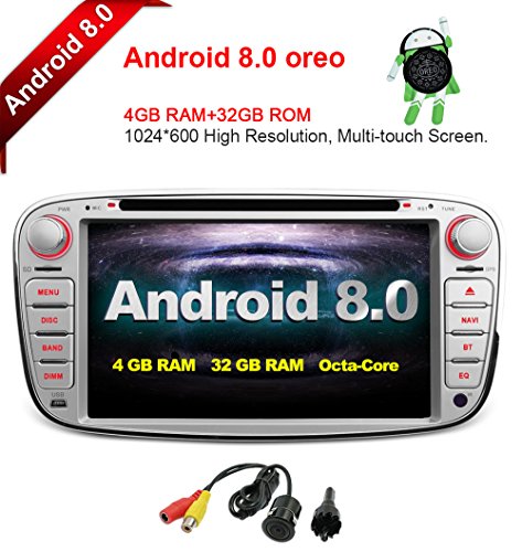 Freeauto per Ford Focus II (2008-2011)/Mondeo (2008-2011)/C-MAX (2008-2011)/S-MAX (2008-2011) 17,8 cm Android 8.0 multi touch screen auto stereo radio lettore DVD GPS Canbus 4G RAM 32GB ROM (argento)