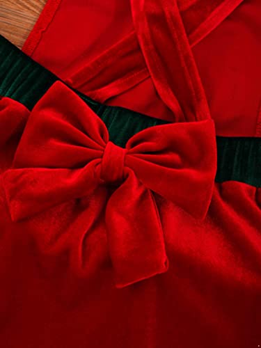 Freebily Abito da Babbo Natale Neonata Velluto Costume da Elfo con Cappello Infanzia Bowknot Cosplay Abitini da Santa Claus Travestimento Costume Natalizio Gioco di Ruolo Rosso 7-8 Anni