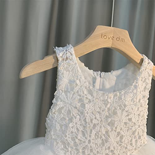 Freebily Abito da Battesimo Neonata Tutu Abito da Sposa Damigella d'Onore Vestito da Principessa Abitini Pizzo Fiori 3D Matrimonio Nuziale Nozze Festa di Compleanno Bianco 6-9 Mesi