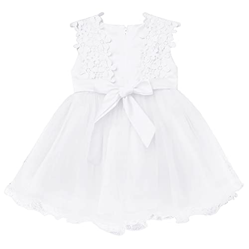Freebily Abito da Battesimo Principessa con Mutandine in Cotone Vestito Cerimonia Neonata con Tulle Abitino Elegante Abito Damigella d'Onore da Sposa Matrimonio Festa Bianco 12-18 Mesi