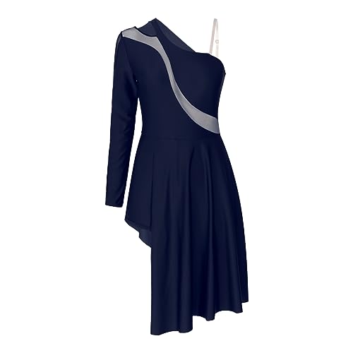 Freebily Abito da Pattinaggio Artistico Donna Leotards Vestito Danza Classica Una Spalla Body da Balletto Abito da Ballo Latino Americano Jazz Danza Moderna Performance Blu S