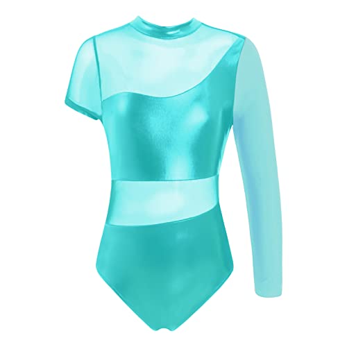 Freebily Body da Balletto Bambina Metallico Bodysuit Rete Trasparente Leotards Body da Ginnastica Artistica Jumpsuit Vestito Danza Classica Costumi di Danza Dancewear Blu 14 anni