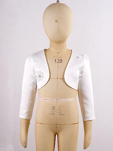 Freebily Cardigan Bambina Cerimonia Primavera Autunno Manica Lunga Bolero Bambina in Pizzo Bianco Perla Coprispalle Elegante Abito Principessa da Sposa Bianco E 3-4 Anni