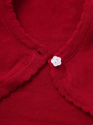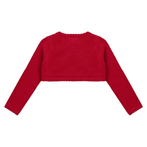 Freebily Cardigan Cotone Neonata Bolero Bimba Cerimonia Abito da Battesimo Maglia Bimba Manica Lunga Maglione Coprispalle Bimba Elegante Bianco Rosso 9-12 Mesi