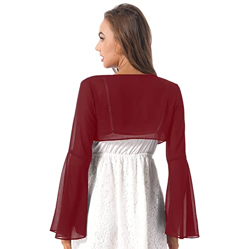 Freebily Coprispalla Donna Cerimonia Elegante Chiffon Cardigan con Maniche Svasate Bolero Leggero Shrug Scialle Abito da Sposa Matrimonio Nuziale Battesimo Comunione Borgogna Taglia Unica
