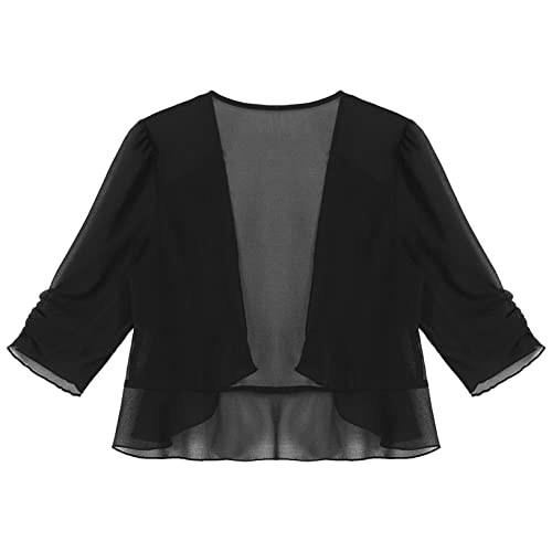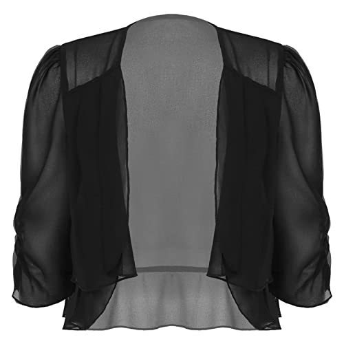 Freebily Coprispalle Donna Cerimonia Elegante in Chiffon Cardigan a Manica Svasata 3/4 Bolero Corto Scialle Leggero Abito da Sposa Matrimonio Nozze Battesimo Festa Nero A M