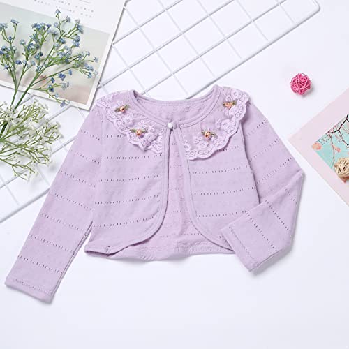Freebily Coprispalle Neonata Bambina Cotone Cardigan da Cerimonia Elegante Pizzo Floreale Bolero a Manica Lunga Maglioncino Scaldacuore Battesimo Matrimonio Nozze Festa Viola Chiaro 4-5 Anni