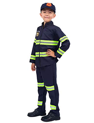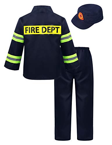 Freebily Costume Pompiere Bambino Carnevale Cosplay Halloween Firefighter Vigile da Fuoco Giacca Maniche Lunghe Rosso Pantaloni con Berretto Cappello Dark Navy 5-6 anni
