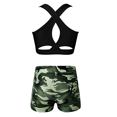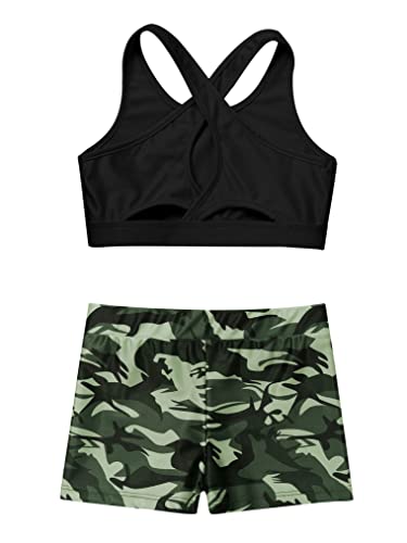 Freebily Tuta da Danza Classica Bambina Completo Sportivo 2 Pezzi Stringer Tank Top Palestra Leggings Corti Stampa Floreale Body Ginnastica Artistica per Ragazza Nero&Verde G 9-10 Anni