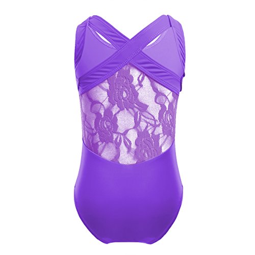 Freebily Body da Danza Classica per Bambina Leotards Balletto Body Ginnastica Artistica Costumi di Danza Pizzo Floreale Backless Bodysuit Trasparente Ballet Senza Maniche Viola 4 anni