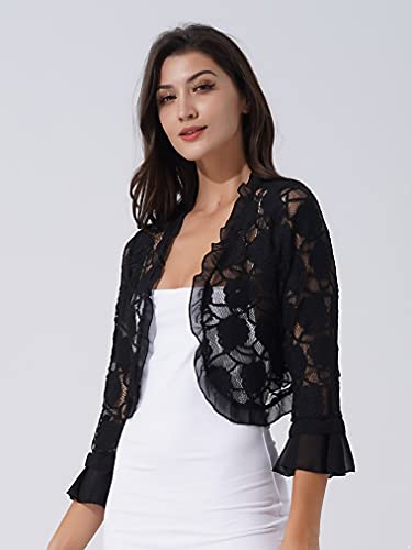 Freebily Donna Bolero Elegante Cerimonia Chiffon Morbido Manica Lunga Sbuffo Leggero Coprispalle Matrimonio Sposa Cardigan Damigella Copricostumi Nero D M
