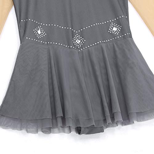 Freebily Donna Vestito Pattinaggio Artistico con Strass Glitter Body sul Ghiaccio Vestito da Ballo Latino Vestito da Danza Balletto Body Tutu Danza Classica Grigio Large