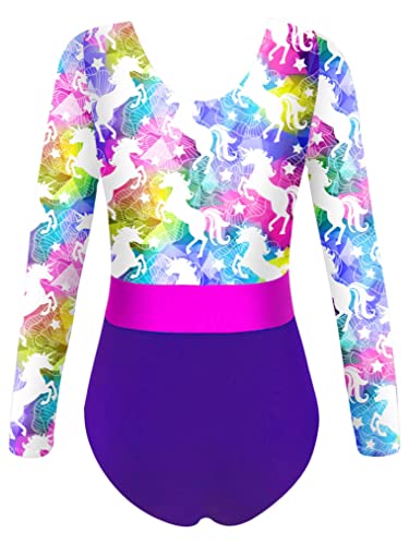 Bambini Ragazze Girocollo Maniche Lunghe Alte Vita Tuta Body Danza Yoga Stampa Colorata