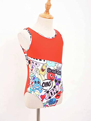 Tuta da nuoto con stampa colorata di cartoni animati senza maniche girocollo da bambina