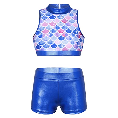 Freebily Tuta Ginnastica Artistica Bambina Paillettes Crop Top Danza Moderna Jazz Hip Hop Metallico Pantaloncini Paletra Glitter Suit Danza Classica da Balletto Dancewear Blu A 5-6 anni