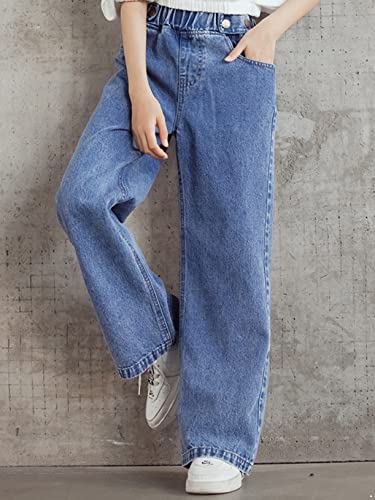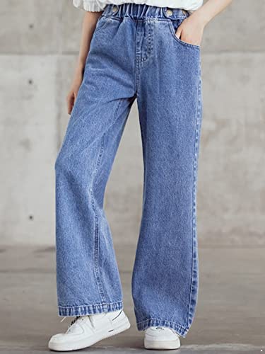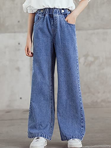 Freebily Jeans Bambina in Denim Pantaloni a Gamba Larga Pantaloni Svasati Vita Alta Pantaloni a Zampa d'Elefante Jeans a Campana Pantaloni Larghi Primavera Autunno Blu 5-6 Anni