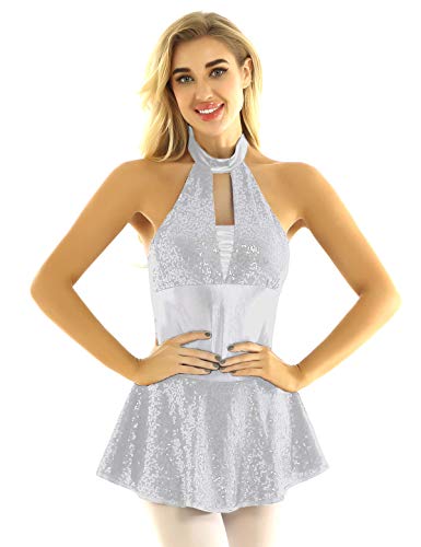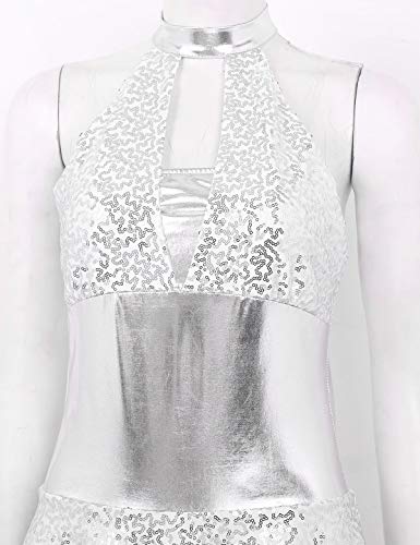 Freebily Paillettes Abito da Ballo Latino Americano Donna Body Danza Classica Ragazza Senza Spalline Wetlook Dancewear Ballerina Vestito Danza Moderna Samba Rumba Leotard Argento X-Large