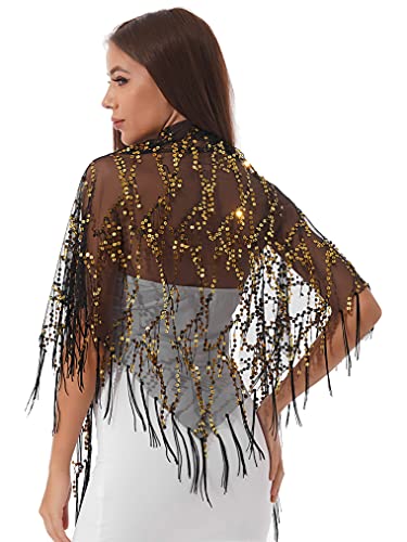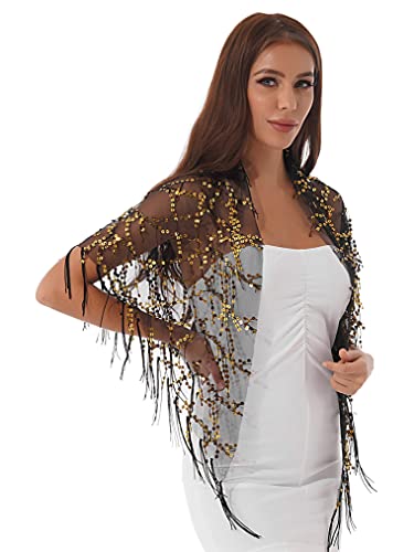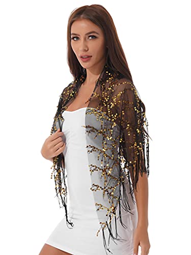 Freebily Sciarpa Donna Invernale Scialle Elegante Cerimonia Stola con Paillettes Floreale Frange Coprispalle Sciarpa Elegante per Matrimonio Sposa Damigella Nero A Taglia unica