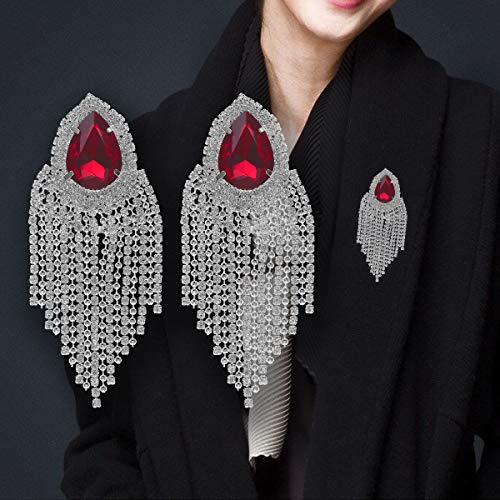 Freebily Spilla Donna Gioiello Grande con Strass di Cristallo Spilla Goccioline d'Acqua Matrimonio Sposa Steampunk Accessori Barocco Brooch Vintage Coppia di Spalline Rosso scuro A Taglia unica