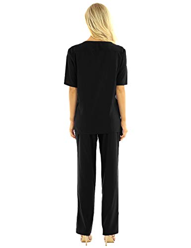 Freebily Unisex Uniforme Medico Donna Maniche Corte Casacca Infermiera Uomo OSPEDALIERA Divisa OSS Completo Sanitario Laboratorio Estetista 2 Pezzi Magliette Pantaloni Nero XXL