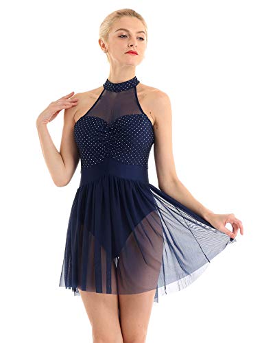 Freebily Vestiti da Ballo Standard Donna per Ballo Liscio Body Danza Classica Senza Maniche con Strass Tutu Ballerina da Balletto Dancewear Leotards Abito Pattinaggio Blu scuro X-Small