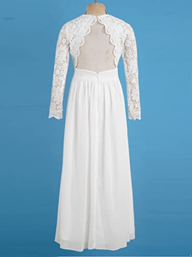 Freebily Vestito da Cerimonia Bambina Elegante Chiffon Abito da Sera Pizzo Floreale Stile Impero Abito da Sposa Damigella d'Onore Matrimonio Nuziale Nozze Compleanno Bianco 14 Anni