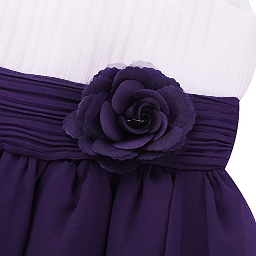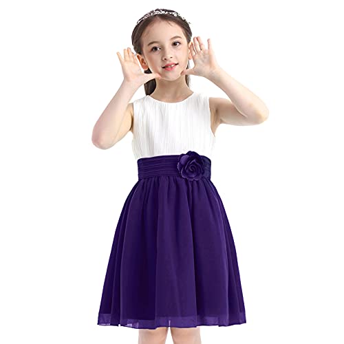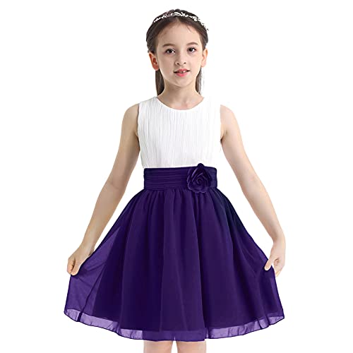 Freebily Vestito Cerimonia Bambina Elegante Chiffon Abito da Sposa Senza Manica Damigella d'Onore Matrimonio Vestito Principessa Tulle Fiori 3D Nuziale Festa di Compleanno Viola 12 Anni