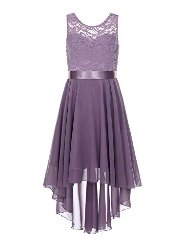 Freebily Vestito Cerimonia Bambina Elegante Tutu Cinffon Vestito da Principessa Pizzo Floreale Abito da Sposa Ragazza in Tulle Asimmetrico Ballo Gown Matrimonio Wedding Viola 14-16 Anni