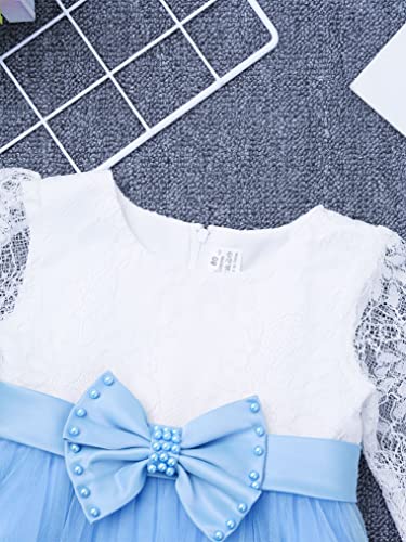 Freebily Vestito Cerimonia Bambina Invernale Maniche Lunghe Top Paillettes Tutu Bimba con Fascia Principessa Abito Elegante Lungo da Battesimo Matrimonio Sposa Compleanno Blue 1-2 Anni