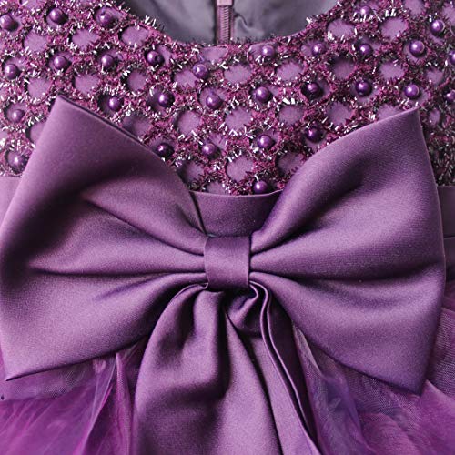 Freebily Vestito Cerimonia Bambina con Perla Abito da Battesimo Neonata Principessa Abito da Sposa per Bambini Festa di Compleanno Vestito Torta Carnevale Viola 3 Anni