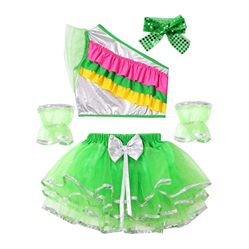 Freebily Vestito Danza Classica Bambina Paillettes 4Pcs Top + Gonna di Tutu + Polsini + Fascia Abito da Ballo Ballerina Vestito da Pattinaggio Artistica Costumi di Danza Verde 7-8 Anni