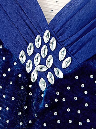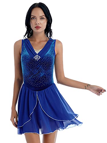Freebily Vestito Danza Classica Donna con Strass Tutu Abito da Pattinaggio Artistico Leotards Bodysuit Skater Abito da Ballo Chiffon Vestito da Balletto Performance Gara Royal_Blue M