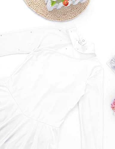Freebily Vestito Danza Classica Ragazza con Strass/Pizzo Schiena Scoperta Vestito da Pattinaggio Artistico Leotard Balletto Body Ginnastica Artistica Maniche Lunghe