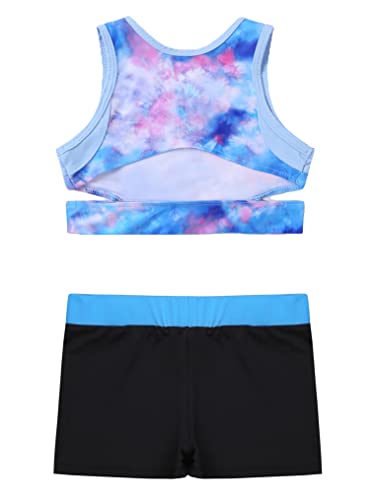 Freebily Vestito Danza del Ventre Bambina Tuta Sportiva Ragazza Estiva Body Ginnastica Artistica per Bambina Senza Manica Stringer Tank Top Pantaloncini Palestra Blu J 9-10 anni